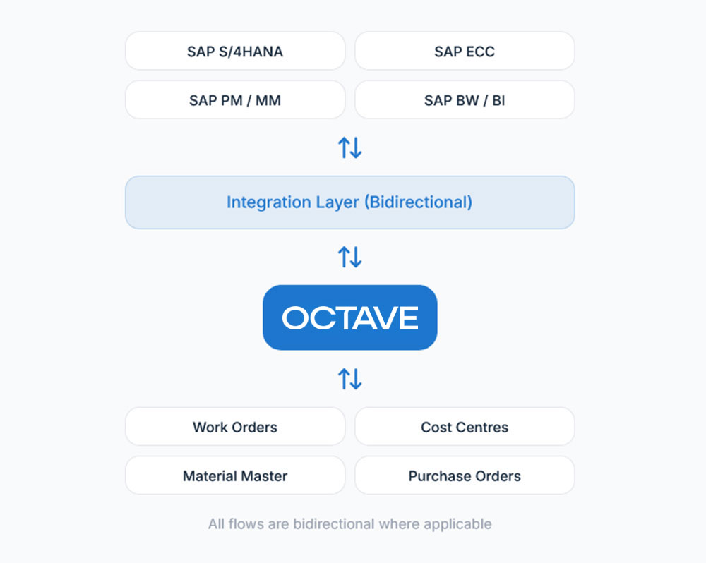 The integration sync assets, work orders, and cost data between SAP and Octave Attune. This keeps SAP and EAM aligned.